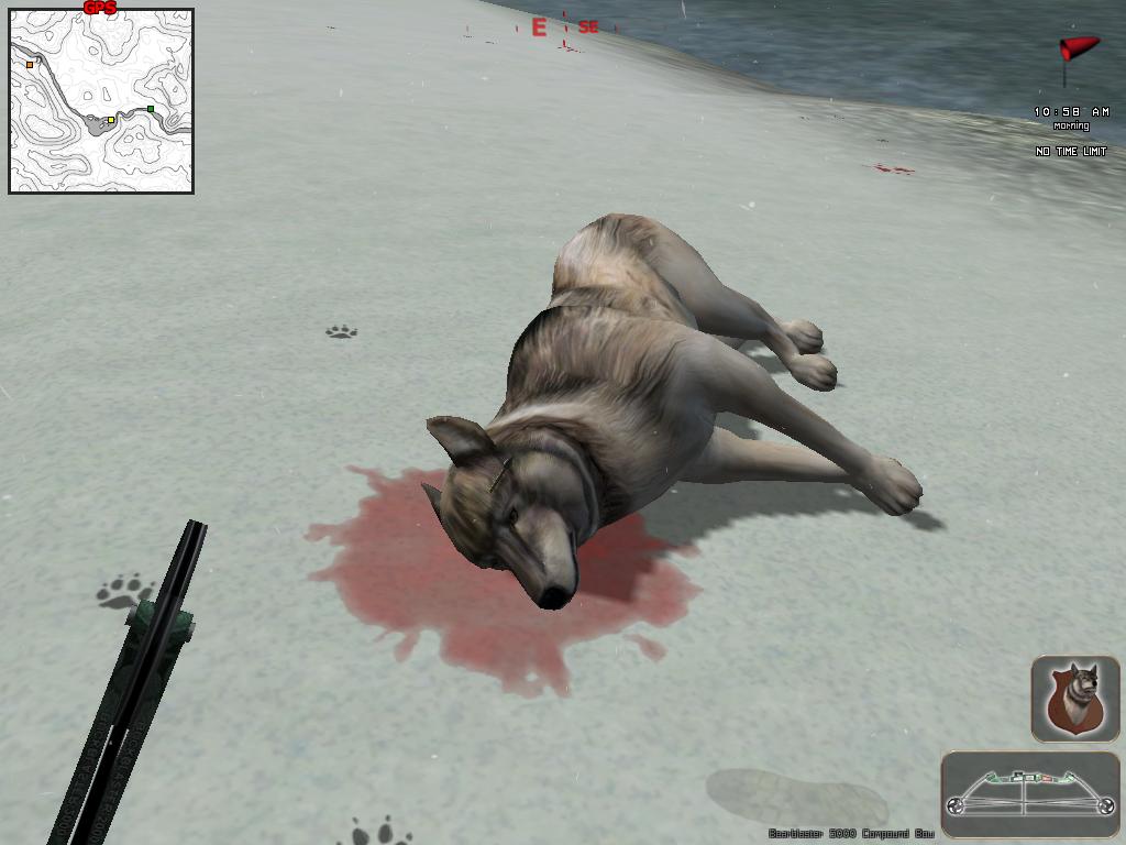 Dodam svuj screen je to z hry Trophy Hunter 2003 a jsem celkem pyšny že sem skolil vlka lukem takovou ranou - všimněte si že ma šipem propichlou hlavu skrz na skrz :-) (byl to muj prvni vlk skoleny lukem)