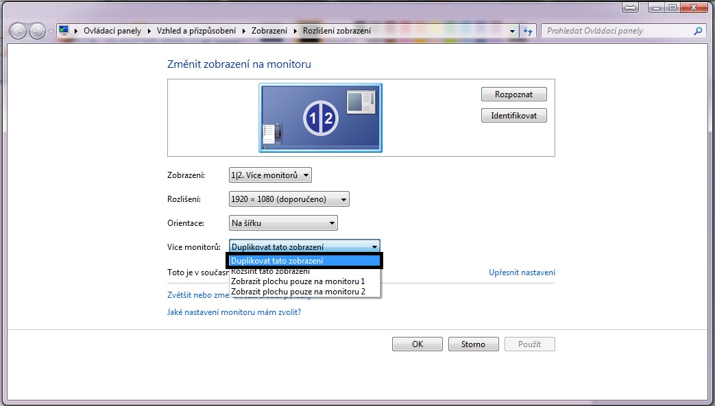 Poté, když chceš mít stejné věci jak na monitoru, tak na TV (což znamená, že vše co uvidíš na monitoru, uvidíš i na TV = DUPLIKÁT), vybereš Duplikovat tato zobrazení (viz. obrázek 1). Když chceš mít takzvaně dvě obrazovky (dá se říci prodloužení monitoru = ROZŠÍŘENÍ), že uvidíš svoje věci co děláš na monitoru, a například film nebo něco jiného na druhém monitoru (resp. TV), vybereš Rozšířit tato zobrazení (viz. obrázek 2). Můžeš vidět, že na Zobrazení: 2. W2243 (což je můj monitor) mám dolní lištu, takže je Toto v současnosti můj hlavní monitor (toto nastavení si můžeš vybrat pod nabídkou Více monitorů, stačí zakliknout čtvereček, buď u 1. monitoru, nebo u 2. monitoru). Pak je tu ještě Nastavení rozlišení, Orientace, a nebo v nabídce Více monitorů, ještě Zobrazení plochy na monitoru 1, nebo 2. Ale tu už asi nemusím vysvětlovat.