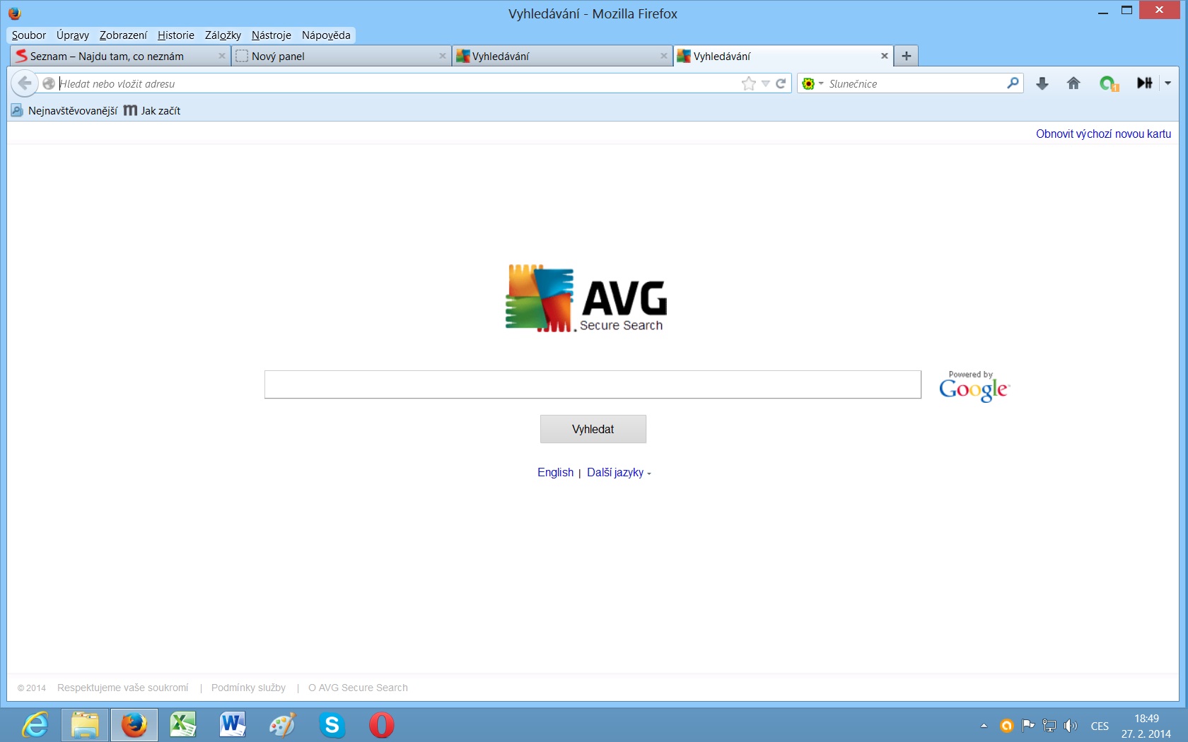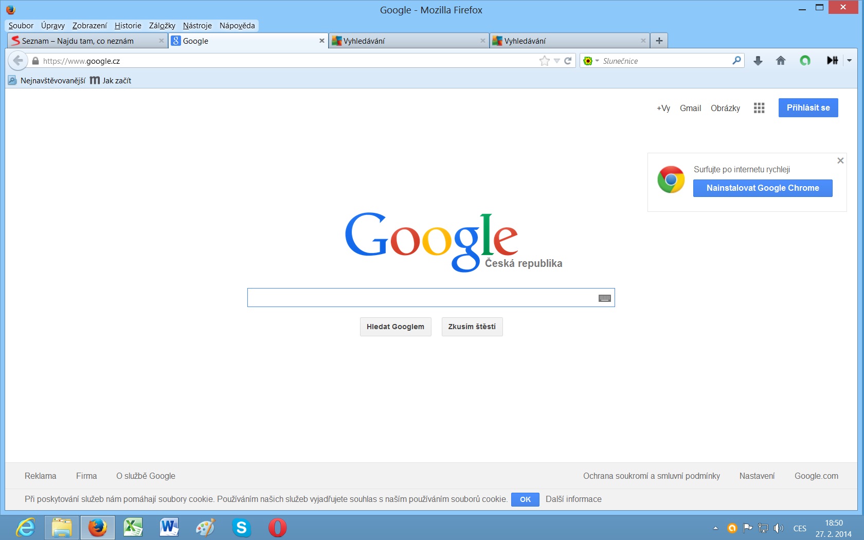 Dobrý den. Mám Mozilla Firefox, Win 8. Když otevřu Firefox, tak se mi načte v pohodě. Načte se mi úvodní stránka seznamu,