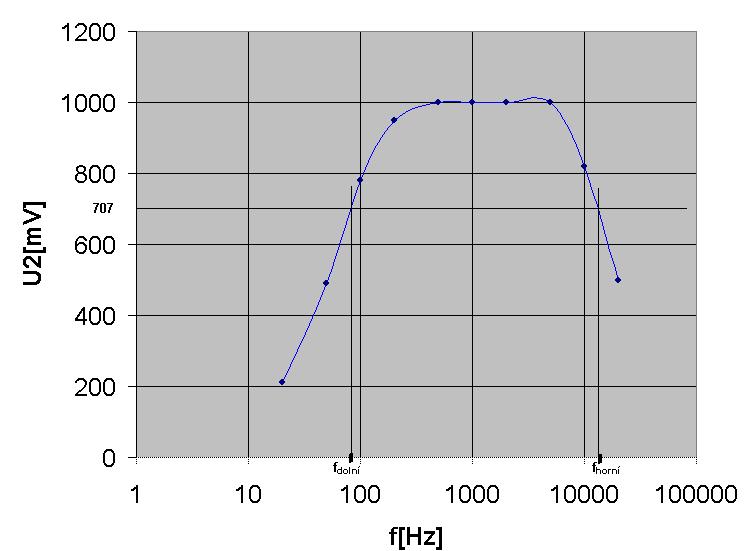 pokles o3dB .. takže 70% z U2 při jmenovité frekvenci 1kHz (u2/odmocnina ze 2) asi tak ...