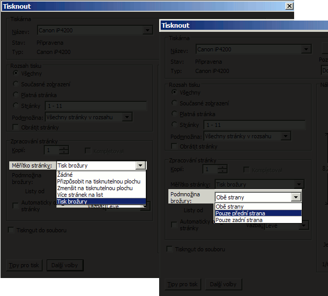 A krom toho Adobe Reader 9 umožňuje tisk brožury také: