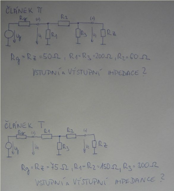 Zdravím, potřebuji poradit. Mám dva útlumové články, T a Pí. Potřebuji u nich vypočítat vstupní a výstupní impedanci, ale netuším jak na to. Materiály k tomu nemám, google toho našel dost, ale většinou bez vzorečů a to je to hlavní co potřebuji. Vím, že to není těžké ... jen nevím jak na to ... Poradí někdo ?