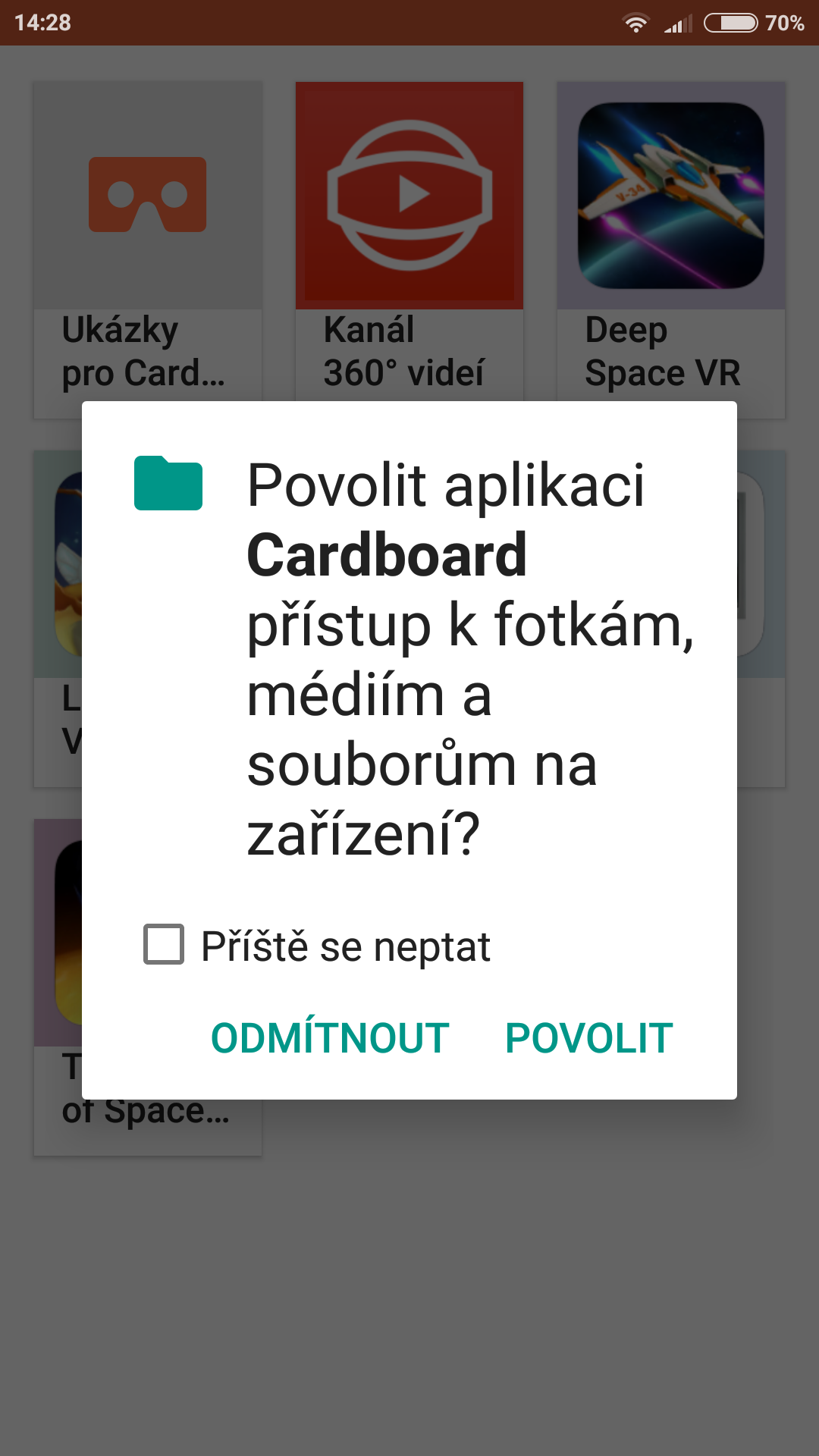 Zdravím. Po instalaci aplikace card board a povolení přístupu k SD kartě aplikaci nelze spustit.Co mám špatně nastaveno? Díky za odpověď.
