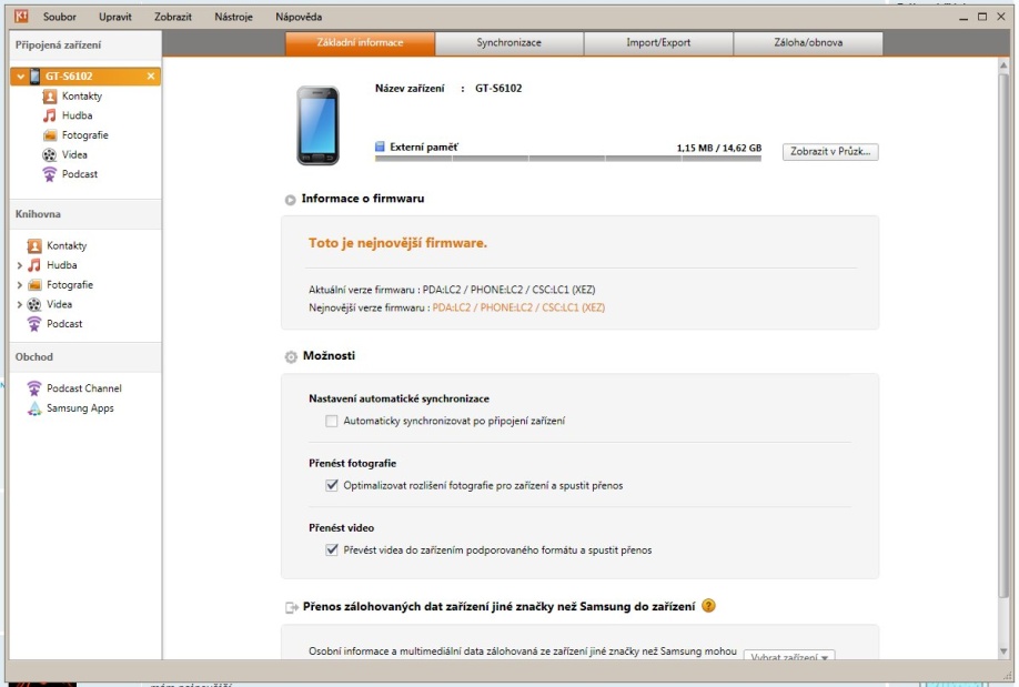 mám Samsung Kies 1.5.3.10103.100 a píše to zase tohle
