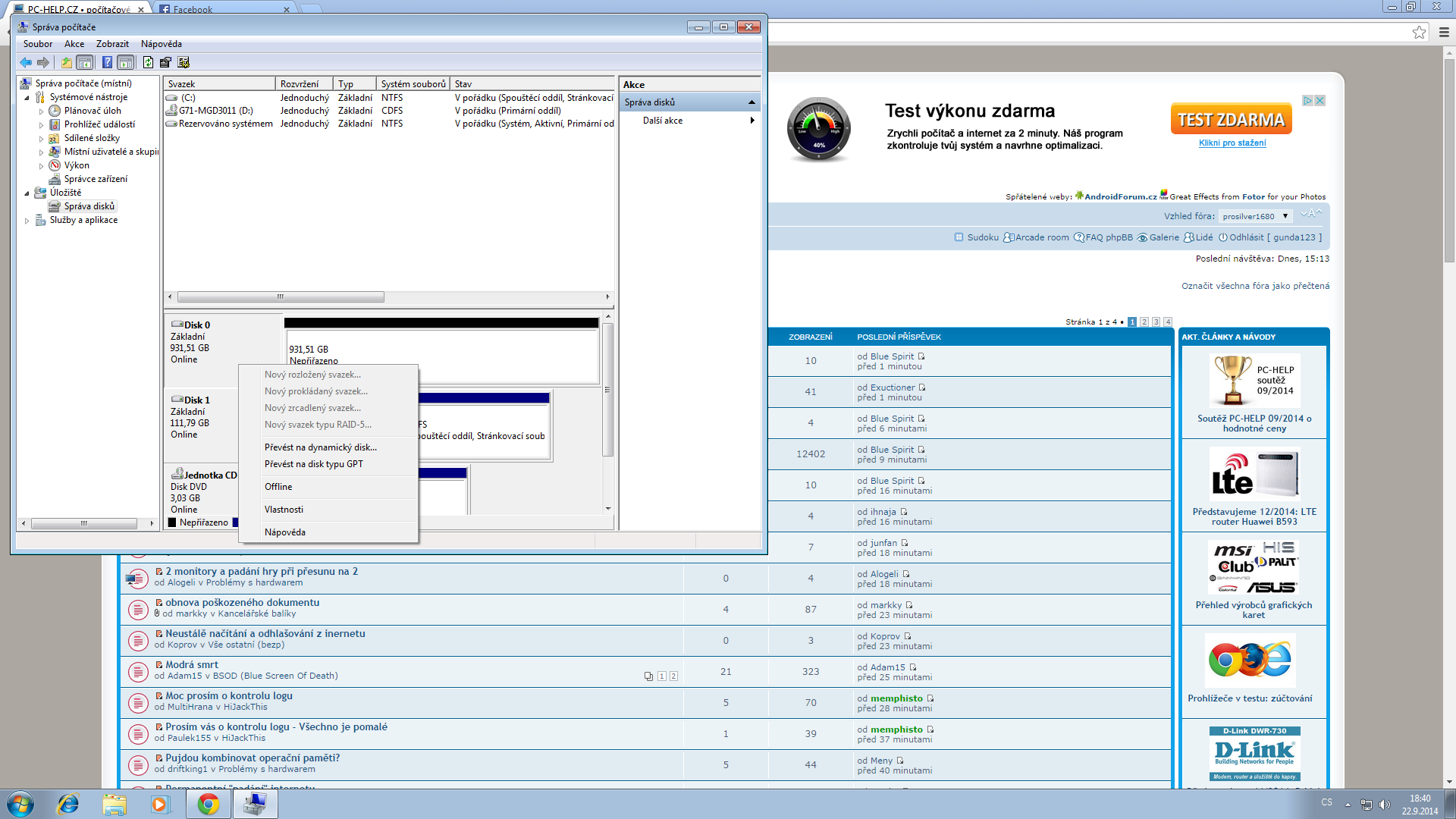 Zdravím, mám zase problém :( :D koupil sem na vaši radu tenhle PC http://www.alfacomp.cz/php/basket.php?i ... OJ0100BN01 a došel mi teď domů a chtěl sem že nainstaluji win na ten SSD disk, vše proběhlo v pořádku, ale nenajde mi to ten HDD. Nemám s tím žádné zkušenosti, přečetl sem něco málo, že se musí nějaký řadič přepnout v Biosu na AHCI... to už bylo nastavené už od začátku. Ve správci disků mi ho najde a je tam nazvaný jako Disk 0 a že nepřiřazeno a ani písmeno nejde přiřadit