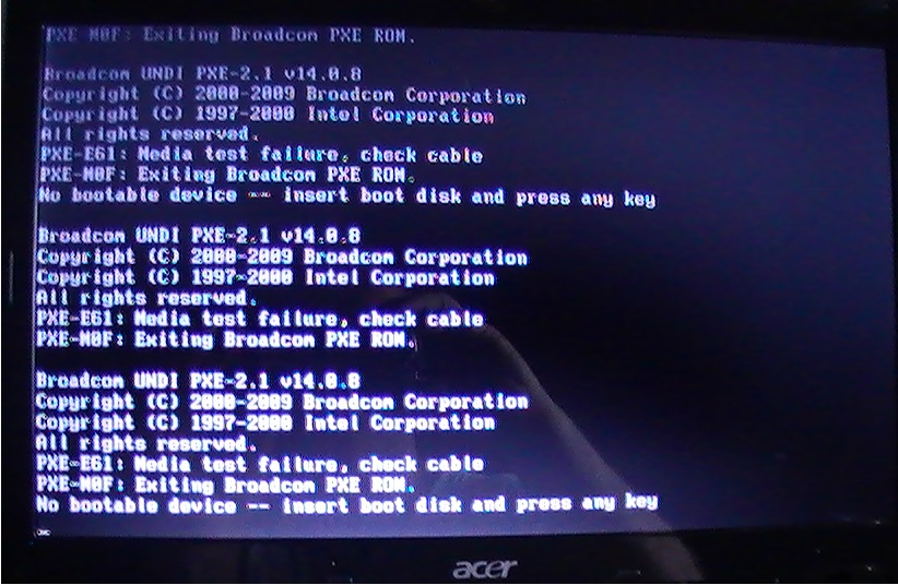 potřeboval bych radu, známej mám notebook Acer Aspire 5551G, ale nejde mu spustit, zapnout jde ale objeví se nějaká černá tabulka s bílím textem, a přes onu tabulku to nejde dál... asi to možná bude jen prkotina, nevíím, poraďte prosím ... přikládám foto tabulky