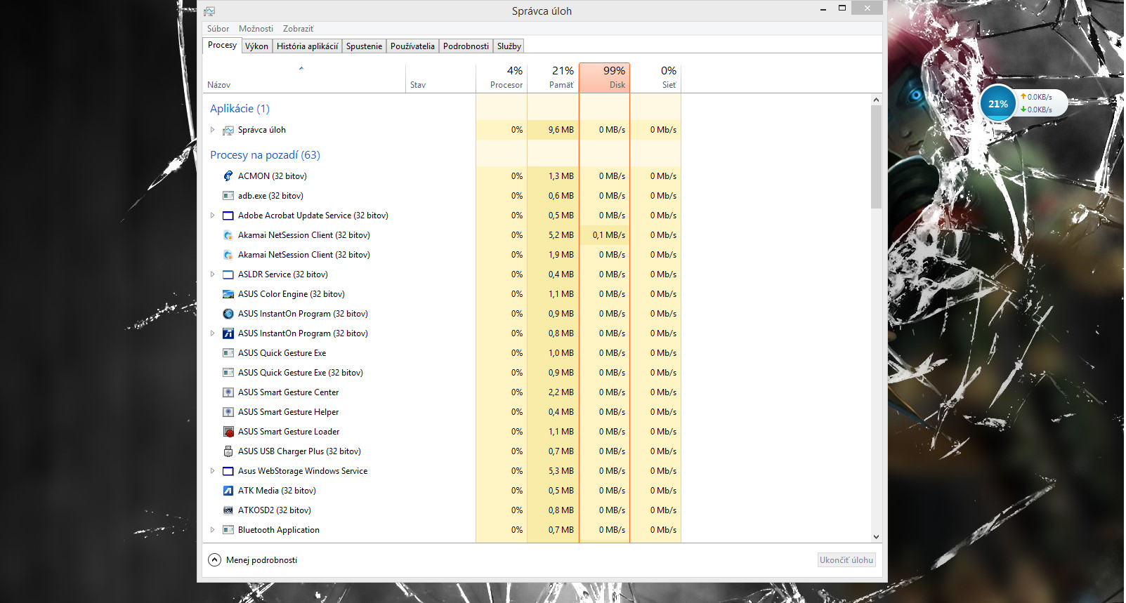 mi môj HDD pracuje na 100% čo spomaľuje chod notebooku. Niekedy pracuje aj dobrých 5-10 minút no neostáva mi nič iné len počkať kým sa "ukľudní". Notebook je nový, kupovaný v auguste/septembri 2014. Zatiaľ čo som pozoroval tak zvyčajne to neboli ani vysoké hodnoty ktoré zaťažovali disk. Bolo to napríklad "Hostiteľ služby: lokálny systém" a ten zamestnával HDD 1,2 až 2,5 MB/s. Nevedeli by ste niekto čo to môže spôsobovať a ako by sa to dalo odstrániť?