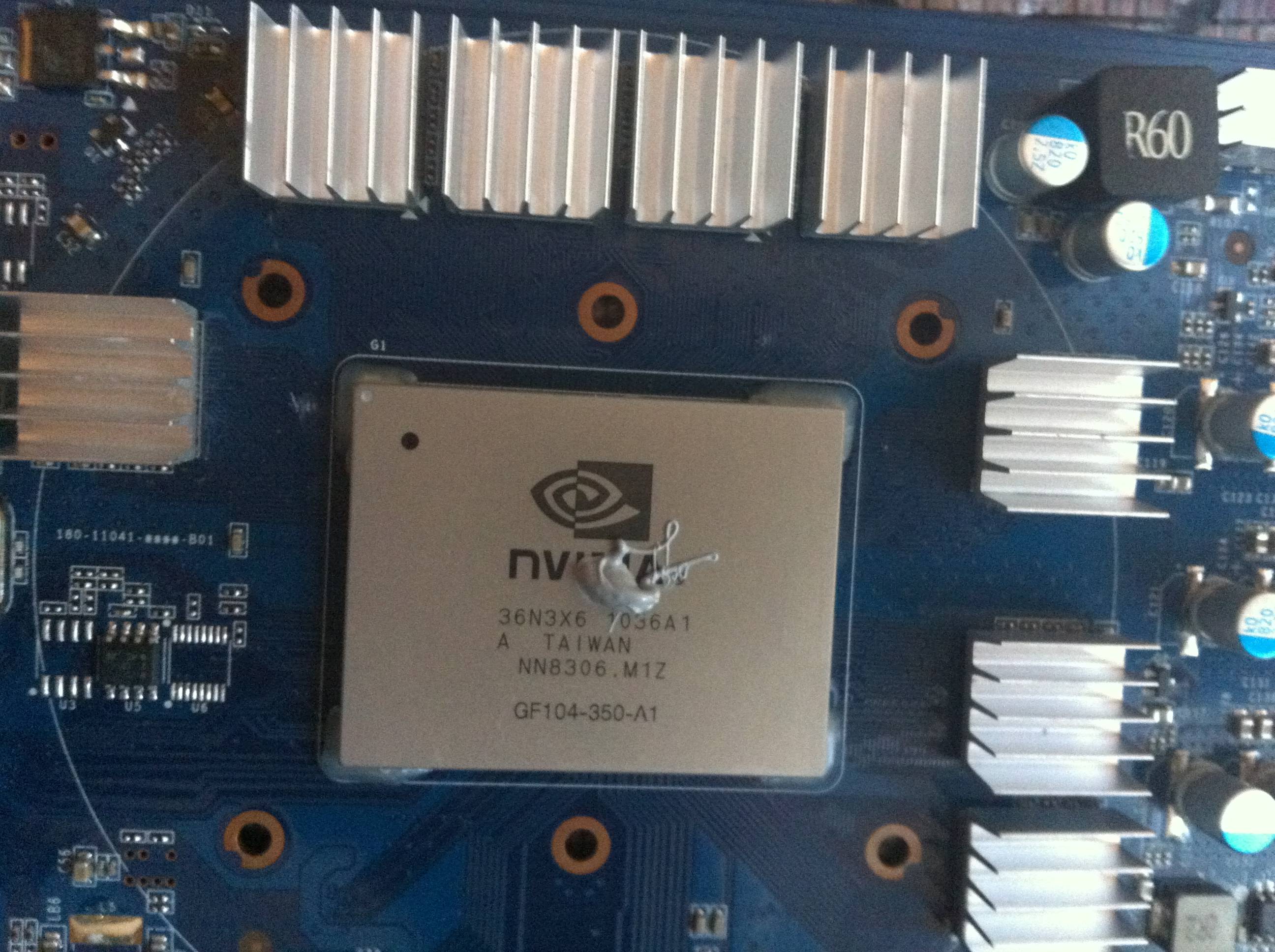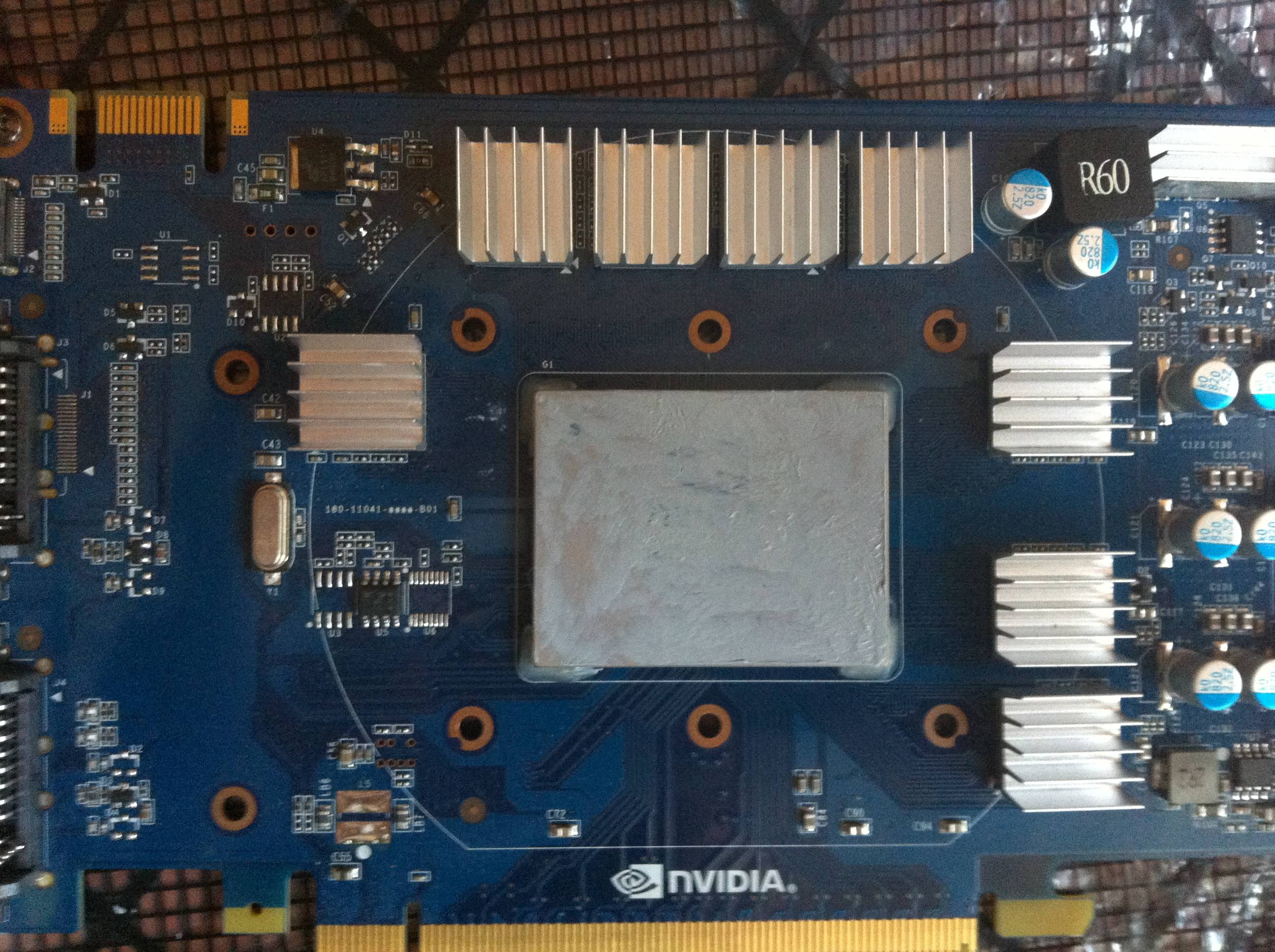 Na fotce můžete vidět kartu hned jak jsem oddělal chladič, to je ta pasta co jsem tam dával dopoledne.