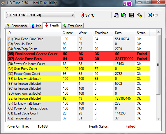 (07) Seek Error Rate 84 60 30 324770002 Failed