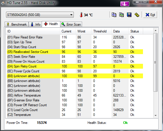 V kazdem pripade Reallocated Sector Count neni 0. Jde o to, jestli se to cislo bude zvysovat.
