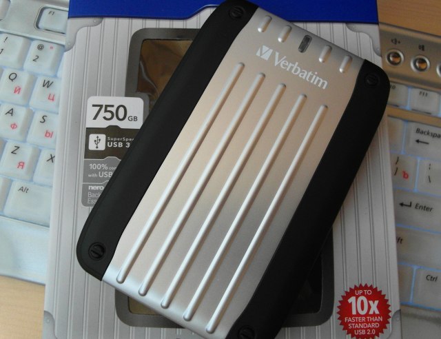 Koupeny externi pevny disk = normalni disk z pocitace v plastove krabici.