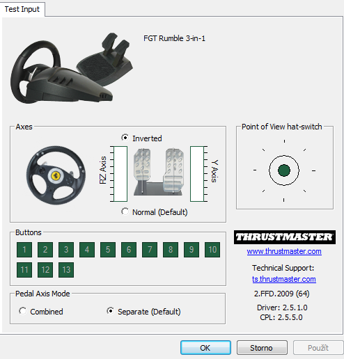 Pokud ale odpojit/připojit kabel nepomůže, tak manuál uvádí stáhnout “Thrustmaster Calibration Tool".
