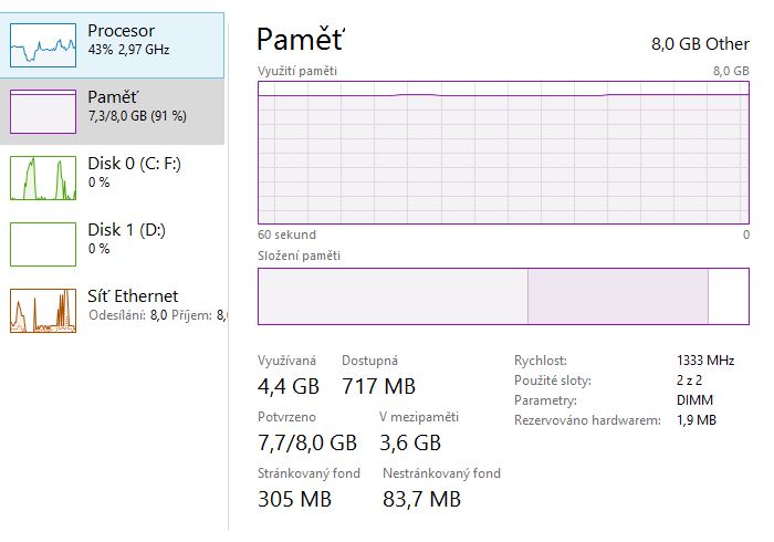 A tady nastává i můj problém. Můj PC si tu paměť nebere z té mezipaměti když je potřeba. Raději mi vyskočí varovná hláška abych si uložil práci a ukončil program XY protože se nedostává paměti pro tento program, ale když se podívám do správce uloh tak pořád vidím, že 4,1GB paměti je v mezipaměti a není využívána, takže počítač pracuje jen s 4GB paměti a dusí se místo toho aby si vzal tu druhou půlku RAM z té mezipaměti.