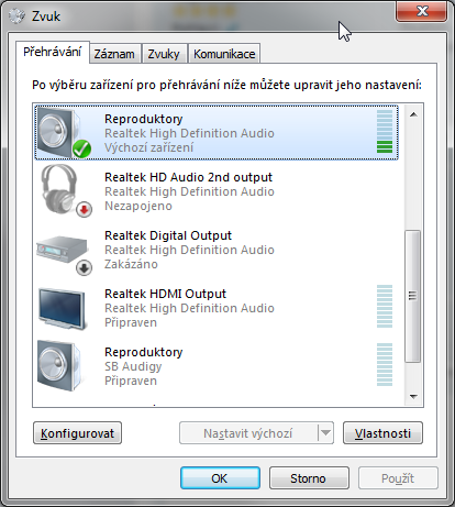 Mám v počítači desku Gigabyte ga-p55a-ud3 a od začátku jsem měl počítač připojen jen přes HDMI k televizi a zvuk běží krásně. Dnes jsem si připojil monitor a použil obyčejné reproduktory s 3.5mm jackem a zvuk nefunguje. Zkoušel jsem stahovat ovladače, správce Realtek, zkoušel jsem připojit zezadu na desku i do předního panelu a různě nakonfigurovat v systému, odstranit potíže se zvukem a reproduktory prostě nereagují, když jsem je připojil k jinému PC, tak fungují úplně normálně. Nevíte v čem může být chyba?