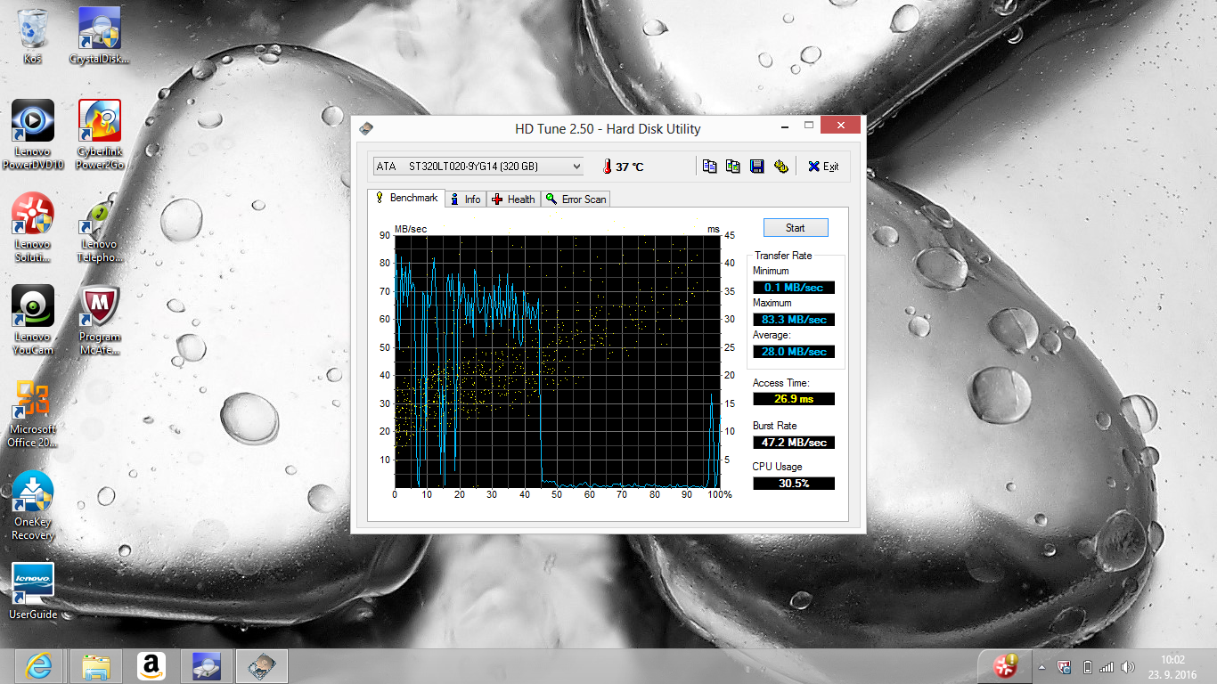 To je hodně mizerný výsledek. Mohl být částečně ovlivněn něčím na pozadí, ale disk není v pořádku. Tak ještě prosím o poslední věc: