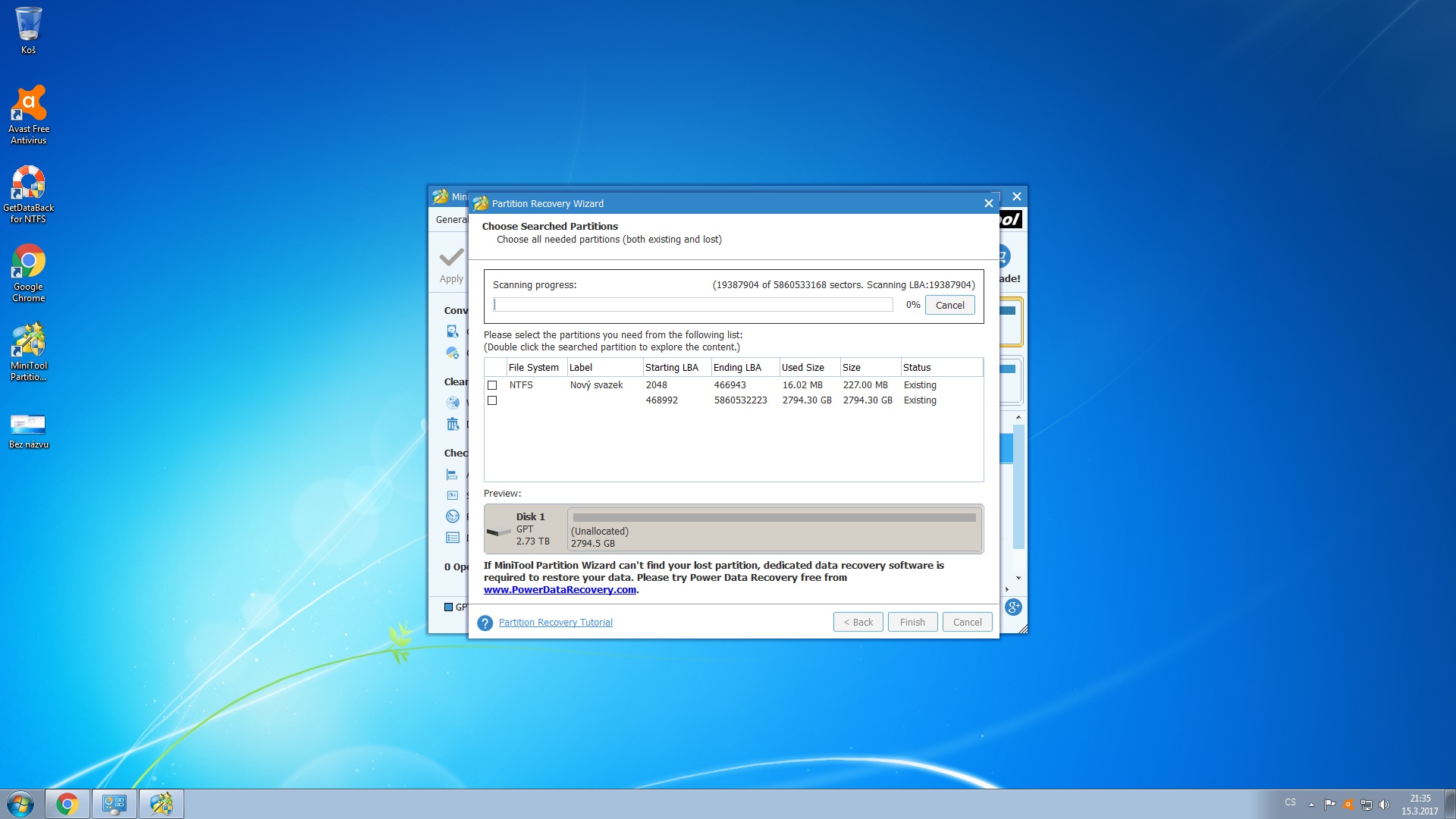 Ten první nenašel nic ale ten druhy už něco našel nechám to jet. Vypadá to dobře.