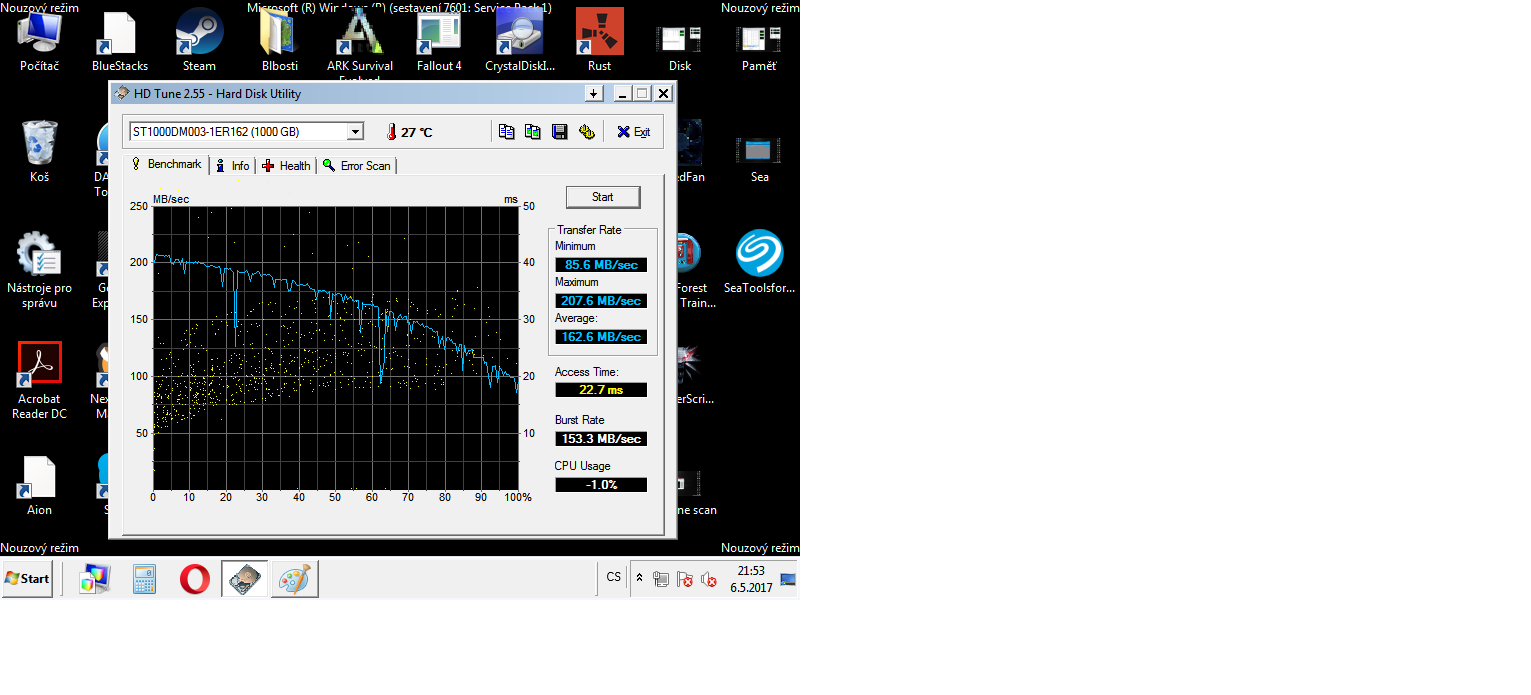 Udělej stejný test HDtune v nouzovém režimu, když říkáš, že to v něm jde normálně. Jestli ta přístupová doba spadne.