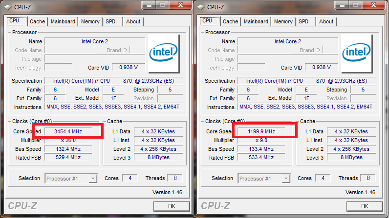Idle frekvence by mela byt 800 MHz s tim, ze pri zatezi okamzite vyleti nahoru.