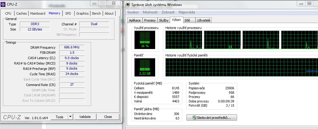 CPU-Z ukazuje dostupných 12 GB - viz screenshot: