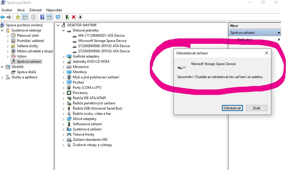 RIKI22 - Odinstalací bych si nerad vyrobil další potencionální problém. Nemám tušení co vlastně je za zařízení "Microsoft Storage Space Device" To si asi nechám jako poslední možnost.