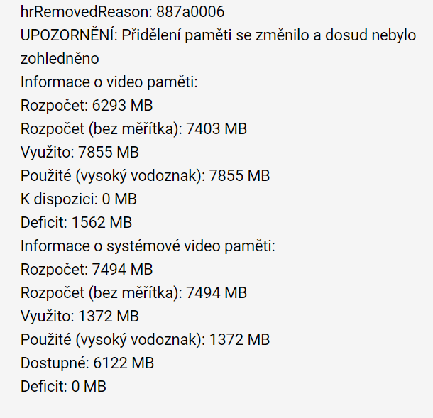 se mi to vícekrát. Přiznám se, že jsem dělal upravy v registrech, ale nemohu říct, že hned po těchto upravách se chyba hned objevila. Všechny ovladače mám nejnovější. Grafickou kartu ovládá Radeon Adrenalin. Přes tento program mám v tuto