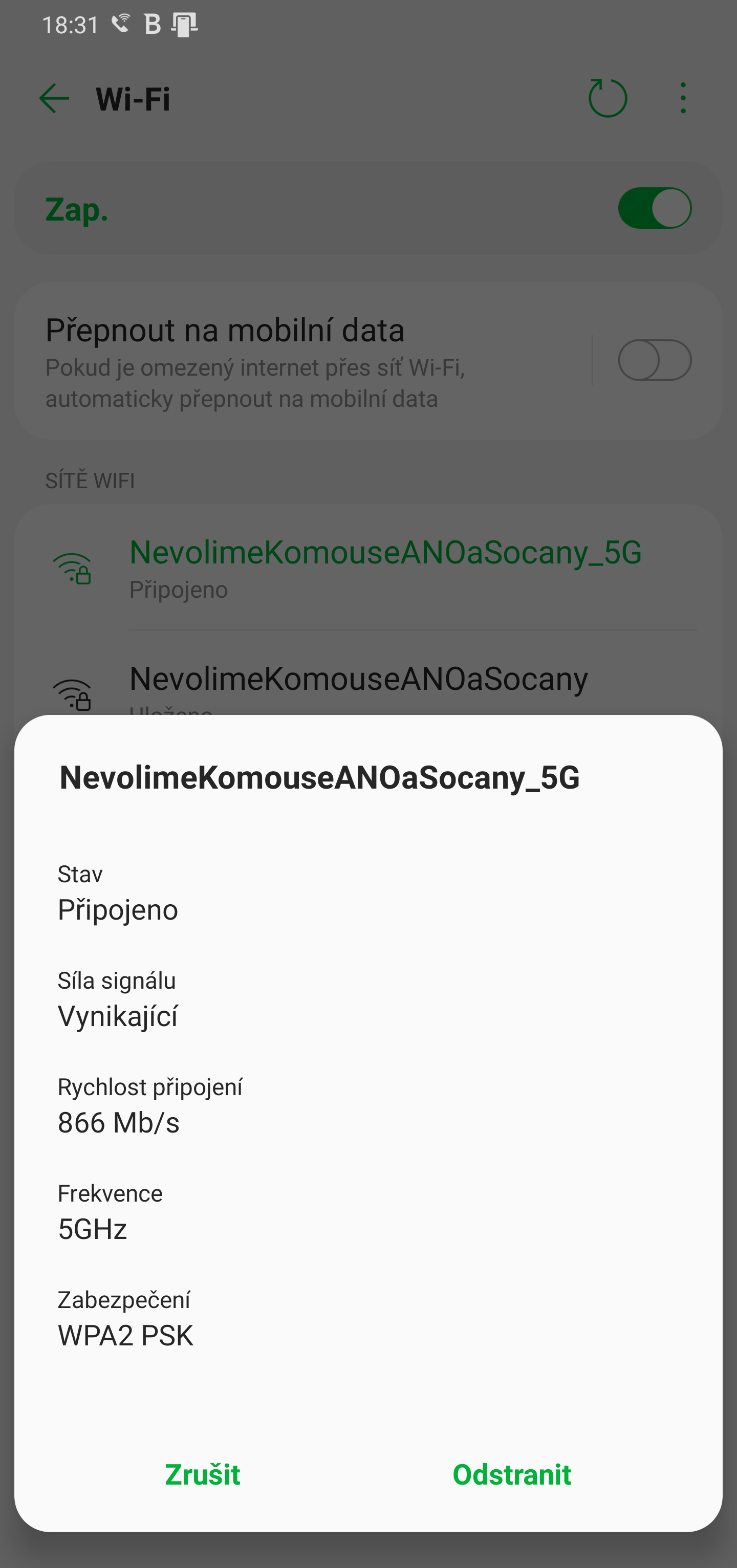 Takže původní moje zmatení, kdy G7 ukazovalo 550Mbps, byla nějaká chybka na LG G7.