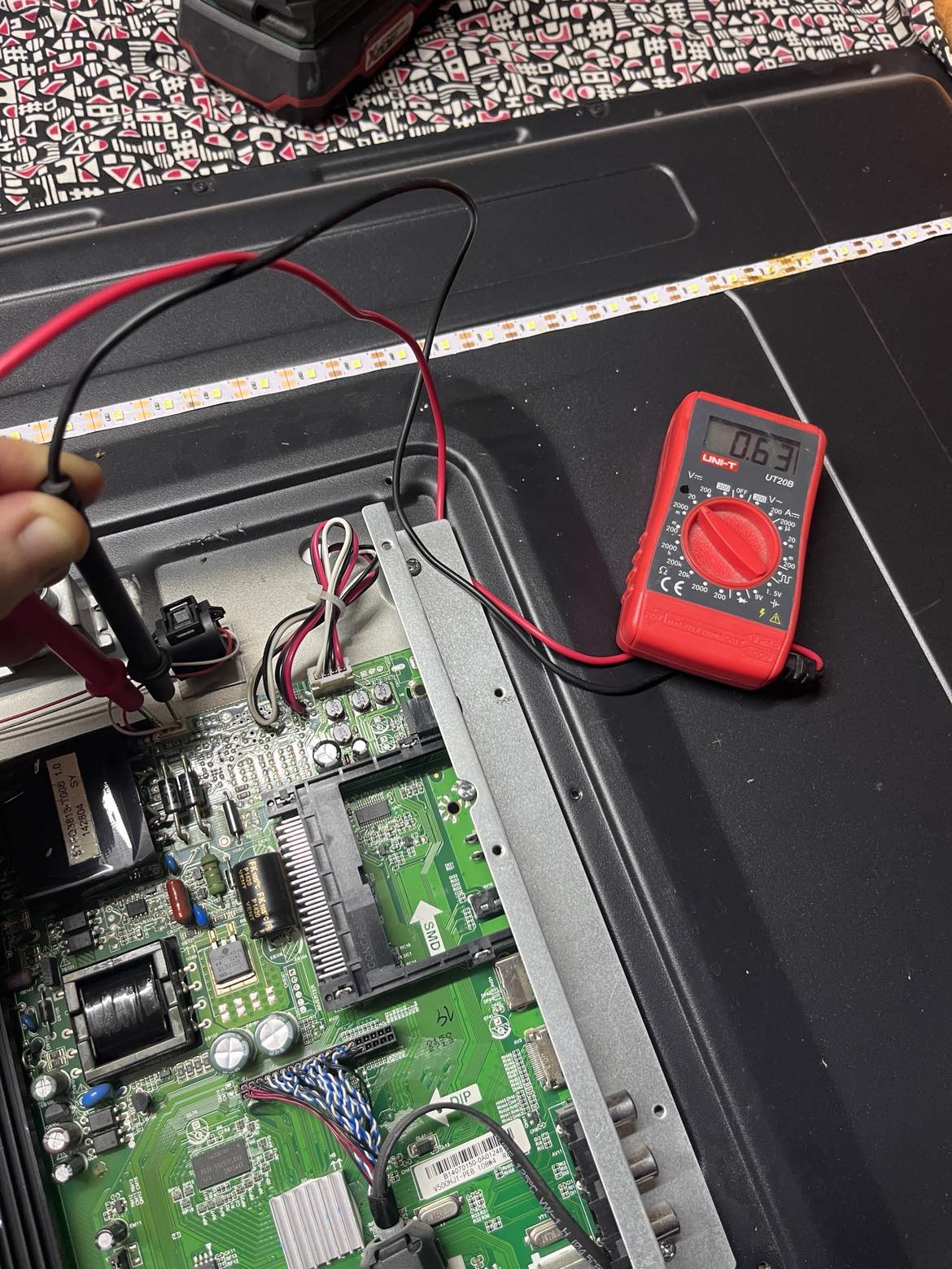 Zdravím, rád bych opravil svou cca 8 let starou televizi Blaupunkt B50A148TC 50" - nedávno se začal po nějaké době vypínat display, ale zvuk normálně hrál. V posledním stádiu svítila televize minutu po zapnutí, teď se display ani nerozstvítí. Většinou jsem se dočetl že buď odešel kondenzátor - bez práce oprava za pár korun, nebo odejte podsvit (800-1500Kč+-). Dokázal by mě někdo navést? Kdyby to byl podsvit, pouštět se do toho asi nehodlám - tolik zkušeností nemám a cenově by se to moc neoplatilo. Snažil jsem se proměřit napětí u červeného a bílého +- co by "měl" napájet podsvit (nejsem ale profík, možná se pletu). Po zapnutí tv naskočí napětí a postupně klesá - to mi teda připadá, že by mohl být nějaký kondík špatný a stačilo by ho přepájet. Prosím, poradí někdo co mám proměřit abych se ujistil, popř jak to zjistit? Jeden velký kondenzátor má zvláštní povrch u +, spálelina to asi nebude, ale třeba bude někdo vědět. Je kondík v pořádku a co se týče nápětí u ledek, je prosím v pořádku?