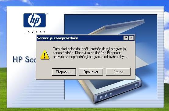 Při použití aplikace OneNote2007 z balíku Office 2007 ke skenování se objeví tato hláška.Po kliknutí na Přepnout se nic neděje, to samé na Opakovat.