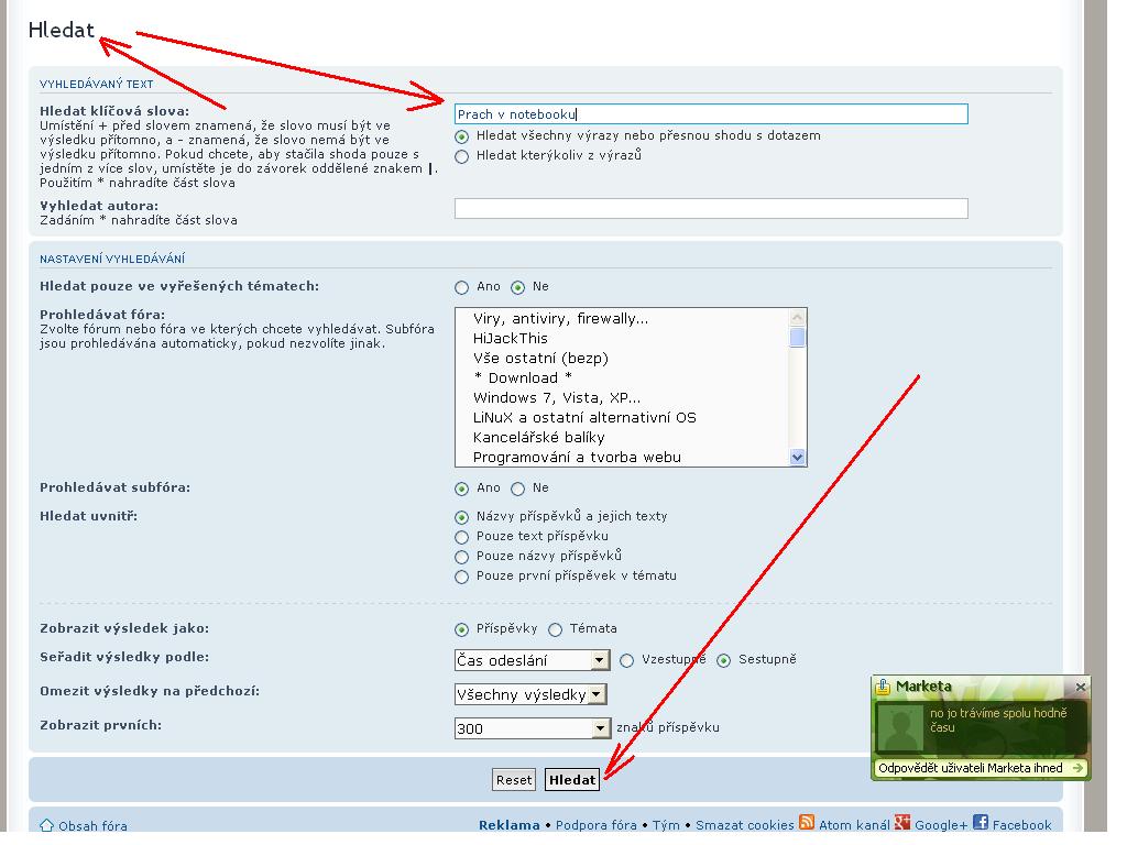 K té první otázce. Máš tu kartu Hledat na kterou klikneš a napíšeš např. Prach v notebooku a potvrdíš, resp Hledat. Potom už vyběhnou odpovědi které s tím souvisí: