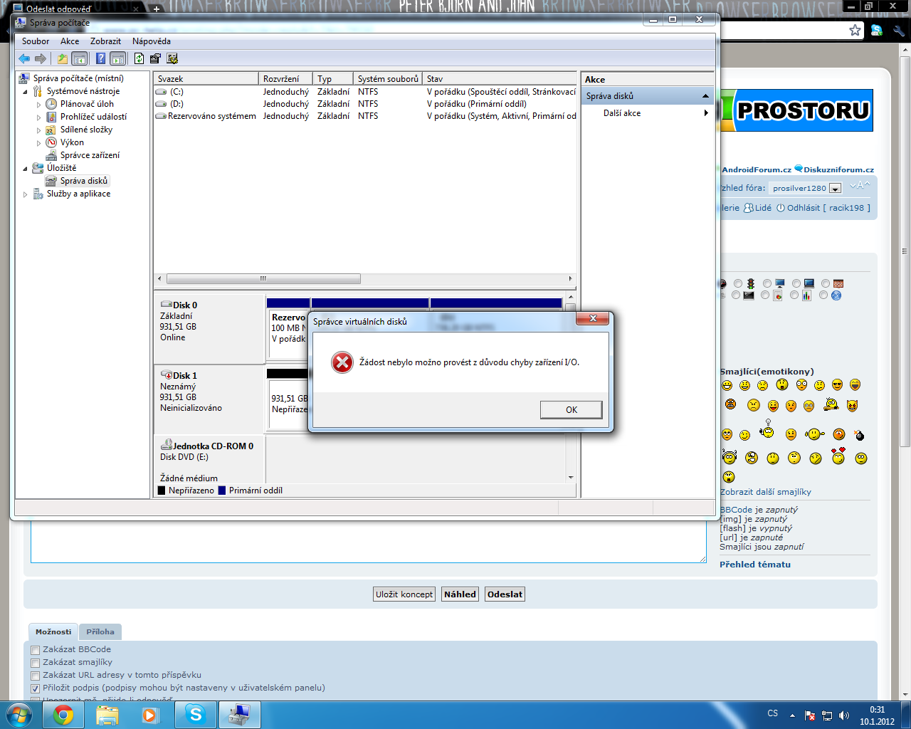 Podařilo se mi ho dostat do Správy disků ovšem teď tohle: