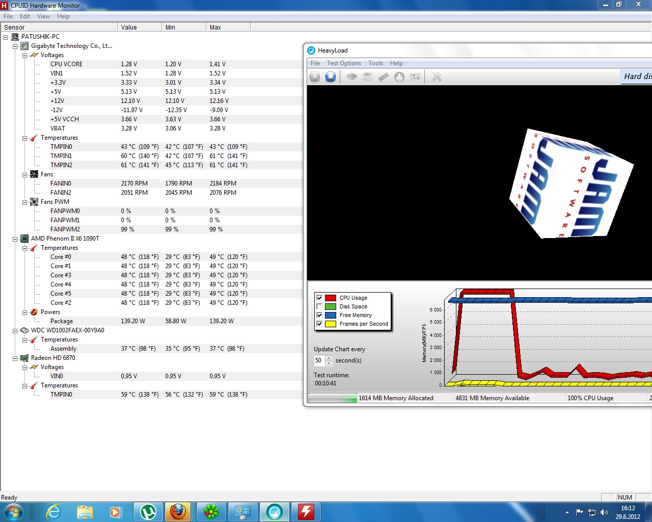 3) Nejprve spusť HeavyLoad a Hardware Monitor. V HeavyLoad spusť zátěžový test, po 10 min udělej screen Hardware Monitoru a hoď ho do příspěvku.