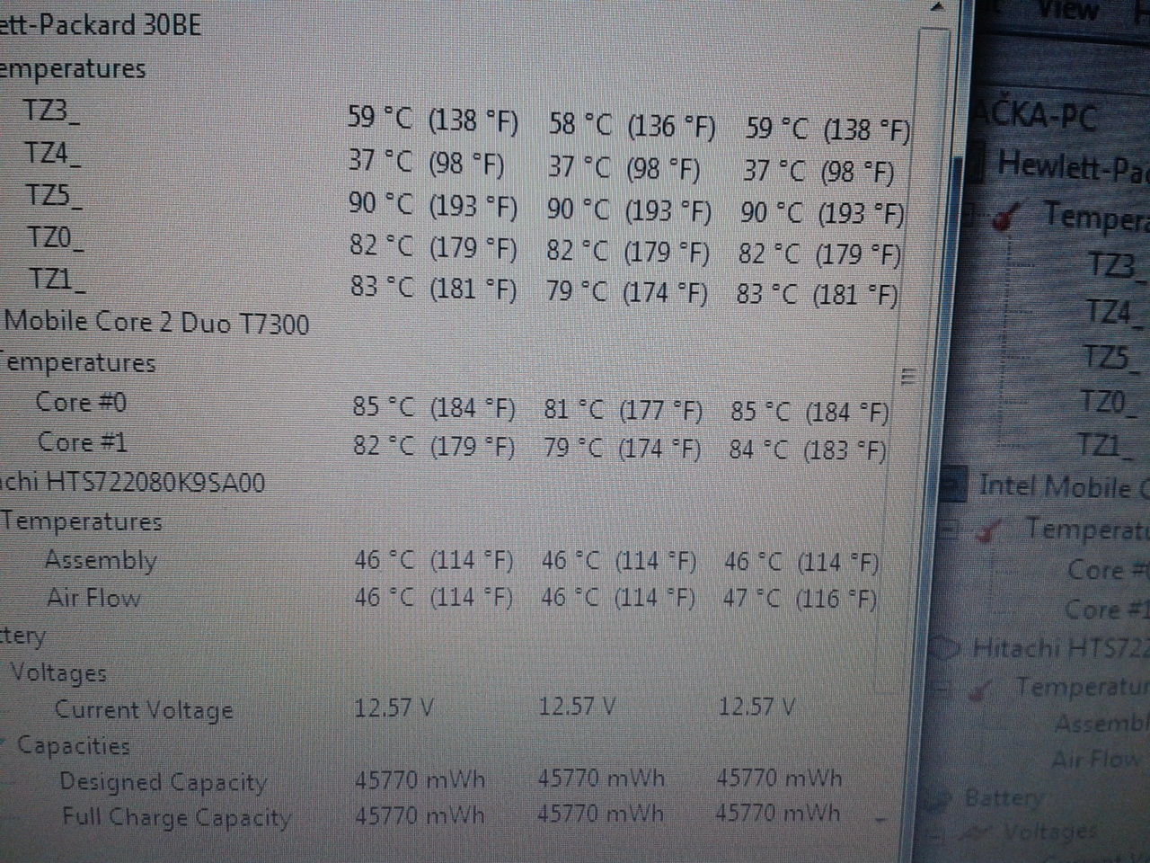čau kluci dostal se mi do ruky tento ntb a zdaj se mi dost vysoký teploty co stim? :/ rozebírat se mi to nechce (neni to moc dobře řešený) a profoukávat to mřížkou od vetráčku se mi taky nechce ( víc bych rozvířil prach vevnitř) určitě je to prachem protože se vsadim že ten pc nikdo nečistil ( je starý 5 let) na 2 jádro mi ty teploty připadaj dost vysoký! to i já mám na 4jádru ntb míň, proto prosím o radu děkuju **přikládám screen z hwmonitoru**