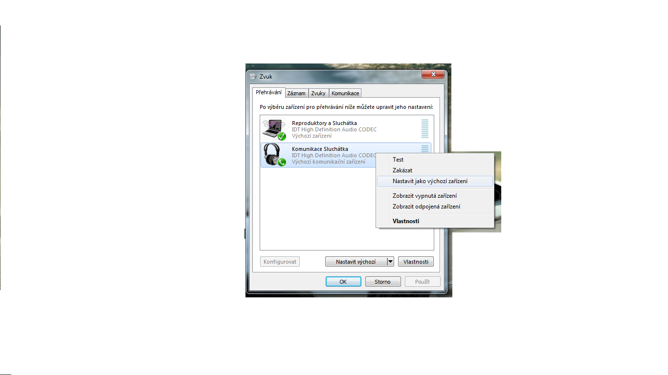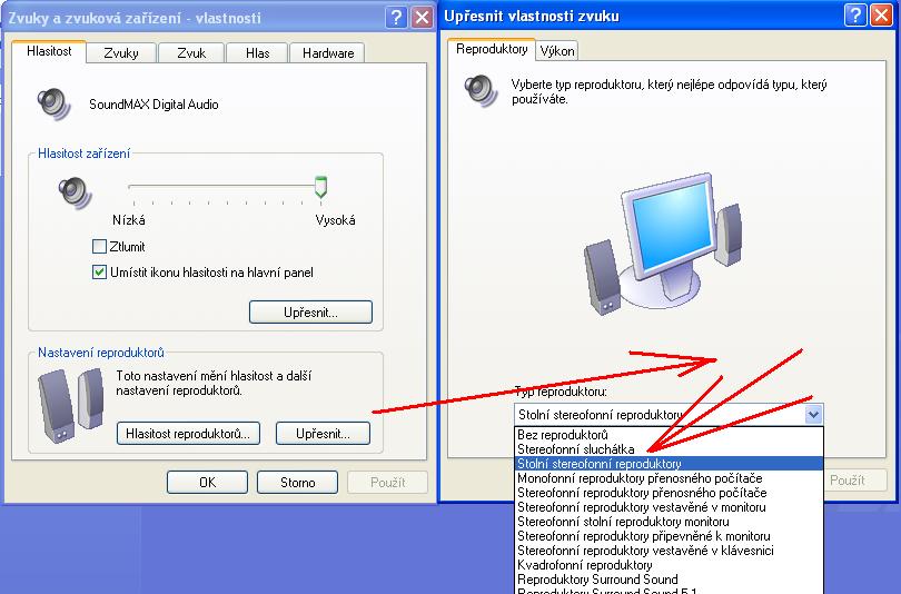 Neuvědomil jsem si, že se jedná o Win 7, promiň! Ale podobné nastavení je i v 7, tak jen pohledat, nebo sem vlož obrázek. Je tam určitě volba druhu výstupního zařízení (mono, stereu,5+1, atd., ale i sluchátka).