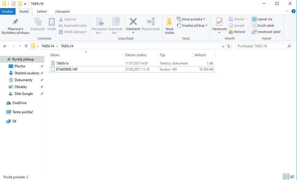 Tento súbor s novým biosom E7A65IMS.140 , si skopíruj na USB kľúč.Kľúč najlepšie formát na FAT32.