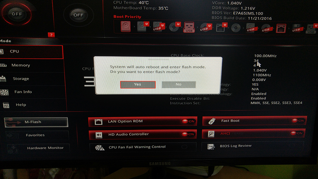 Jel jsem podle návodu, ale jak jsem klikl na M-Flash, tak se objevila hláška viz příloha. Dal jsem Yes a PC se 2x restartovalo a dále už byla jen černá obrazovka...Neměl jsem ani možnost najít si to USB zařízení, kde mám soubor nového BIOSu.