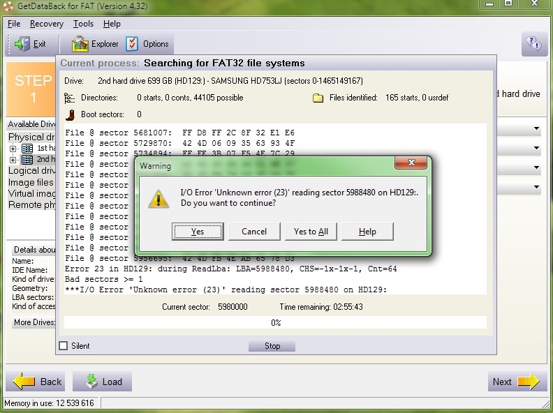 Já se v tom testdisku vůbec neorientoval, proto jsem to ukončil a šel jsem na ten GDB. Pošlu screen z toho, ještě jsem to nechal dělat jednou a šel jsem spát a pořád nic.