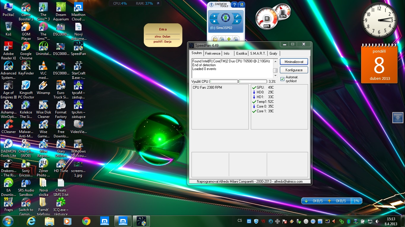 dnes jsem přišel domů a jako vždy jsem si chtěl zahrát multiplayer CoD 4 (originál). Zapnul jsem i chladící podložku, zapnul hru a v pohodě hrál. Najednou se NTB vypnul.. Po opětovném zapnutí hry jsem pomocí HW Monitoru změřil teplotu a byla 88 stupňů na procesoru a 80 na grafice. Zhruba před měsícem jsem NTB čistil a až do dneška to šlapalo v pořádku (do 75 stupňů max). Nevíte, kde může být zakopán pes?