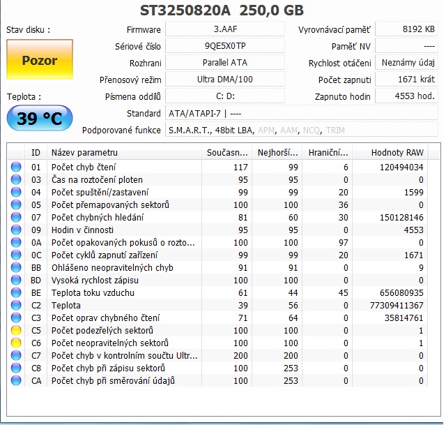 Teplota disku je 40°, můžete mrknout na screen a posoudit zda je v pořádku na pár let dopředu ?
