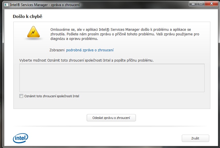 včera při sledování filmu a dnes při surfování po internetu vyskočilo chybové okno, že v aplikaci Intel Services Manager došlo k chybě.