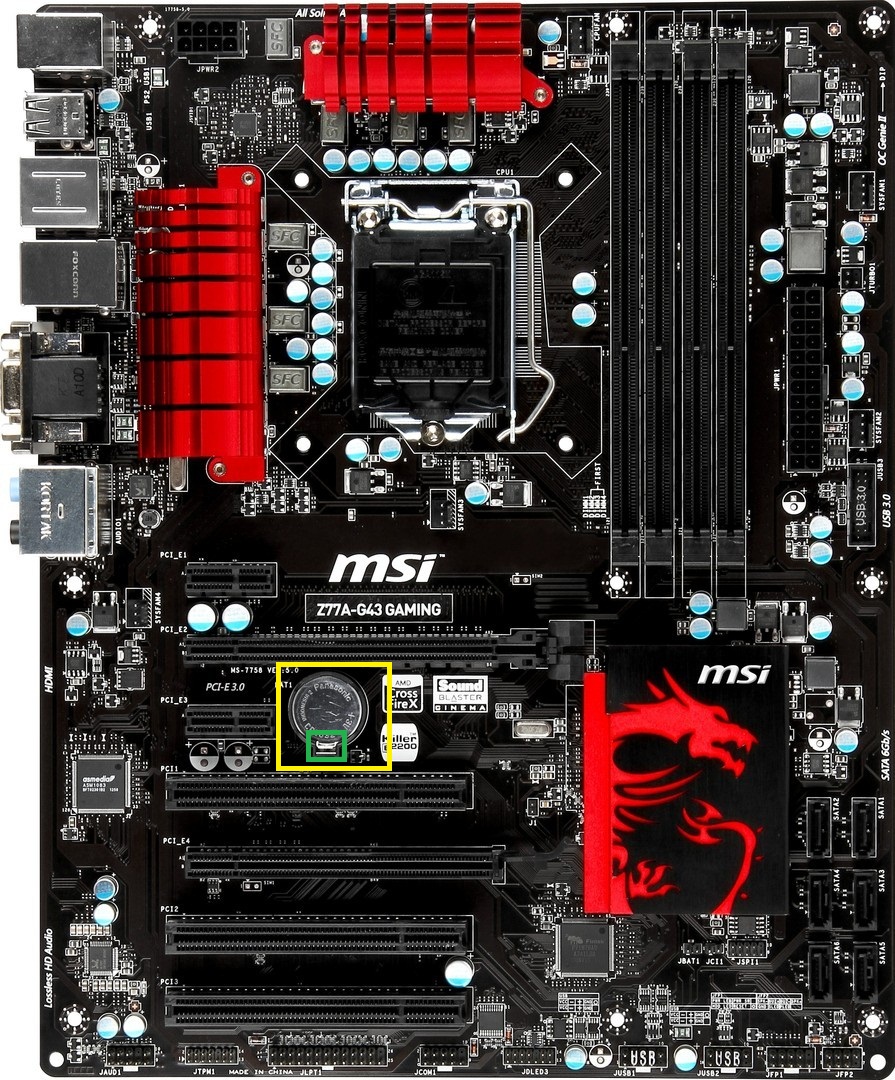 Většinou je to pod slotem pro grafiku nebo u chipsetu (u draka :D ). Je tam takový zobáček (zvýrazněný zeleně). Když na něj zatlačíš směrem dolů, tak vypadne baterka.