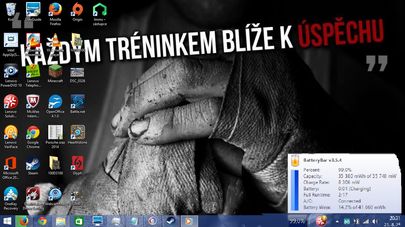 notebook mám pár týdnů a o baterku si myslím že se starám dobře :) do 99% se mi to nabíjí už od první chvíle co notebook mám.