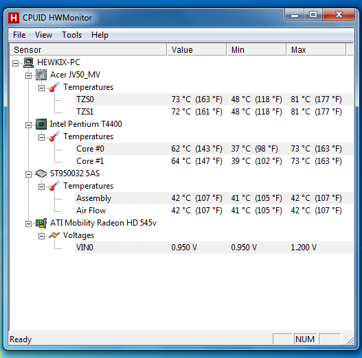 Ntb je asi 4-5 let starý, záruka je tedy pasé. Okej díky nahodím sem nějakej screen s teplotama teda. Jinak jestli máš s tou grafikou pravdu, to se asi nedoplatím že ? :D