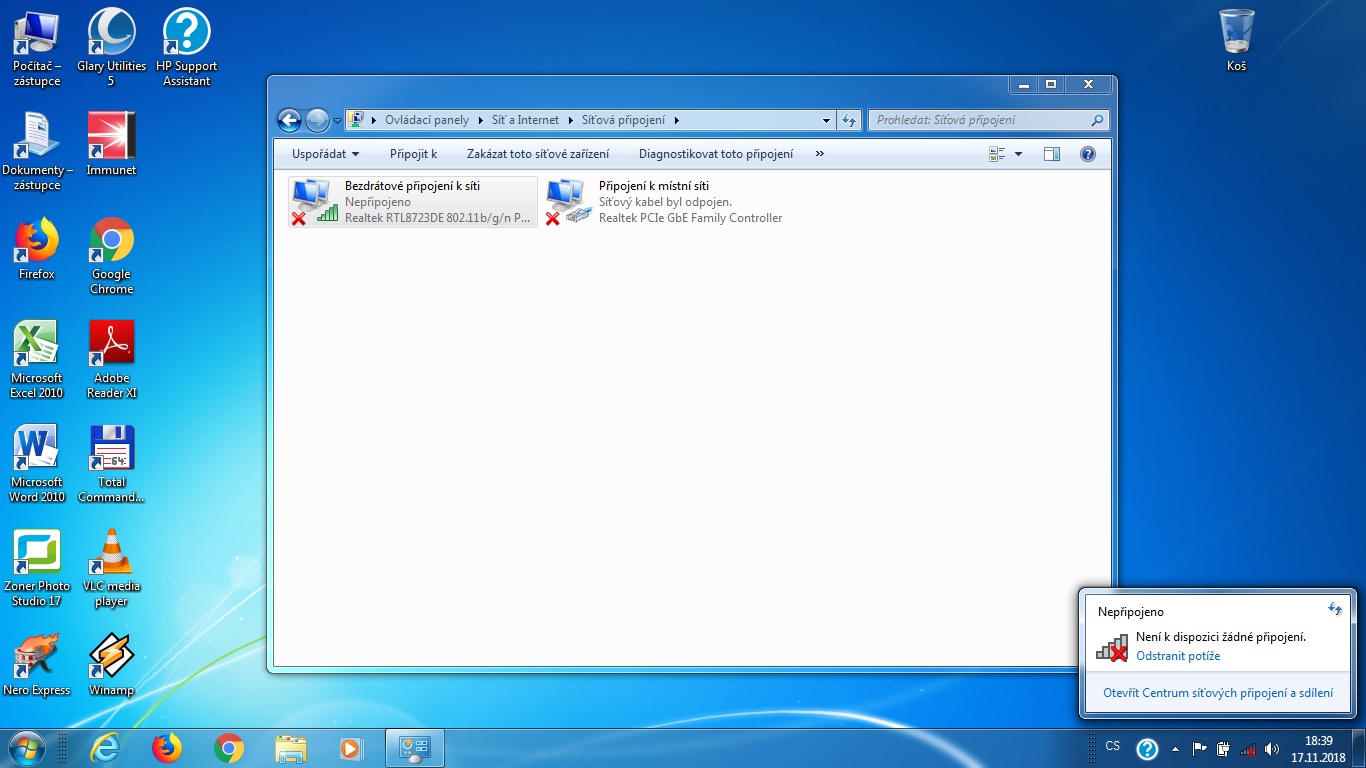 potřeboval bych poradit, jak zapnout wifi u NTB HP 15 (15-ra056nc). Nainstaloval jsem Win7, ovladače, vše OK, ale po odpojení síťového kabelu jen ikona s červeným křížkem...