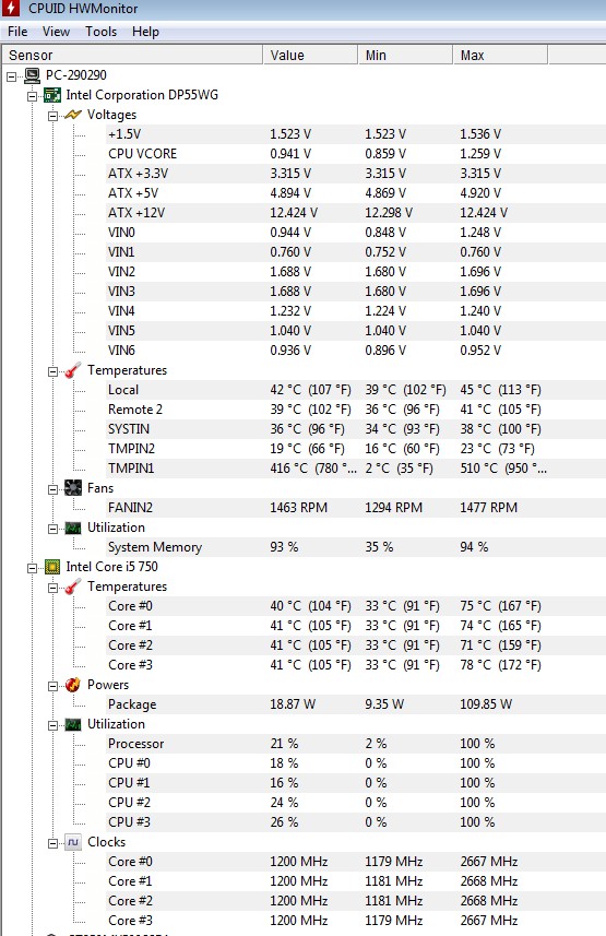 je to normální aby se mi nepřetaktovaný procesor dostával do hodnot viz obrázek? Procesor i5 750 2,6ghz,