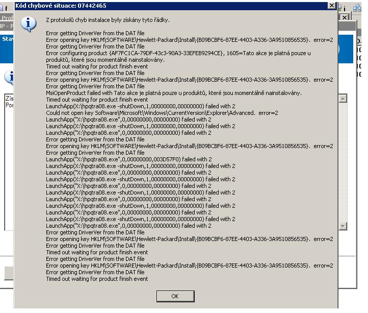 Instalace proběhla dobře jen do té doby, než se začal instalovat skener, pak to vyhodilo to samé hlášení.