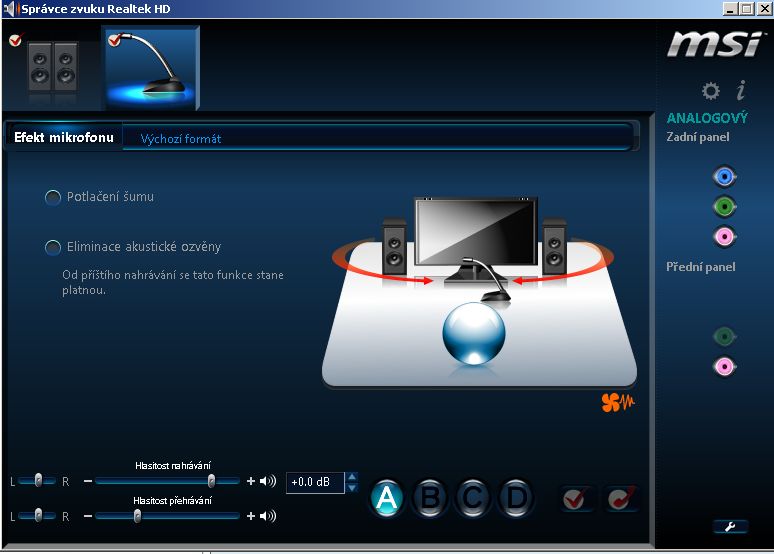 Podívej se ještě na ten zakázaný Směšovač stereo, jestli to nějak neovlivňuje - povol ho a nastav ho.
