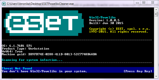Powelikscleaner (ESET) žádná infekice powerliks..