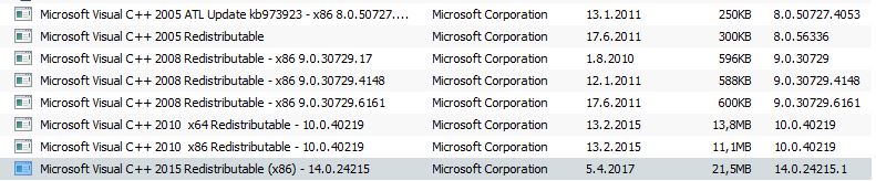 V programech mám asi 10 verzí Microsoft Visual C++ (viz příloha).