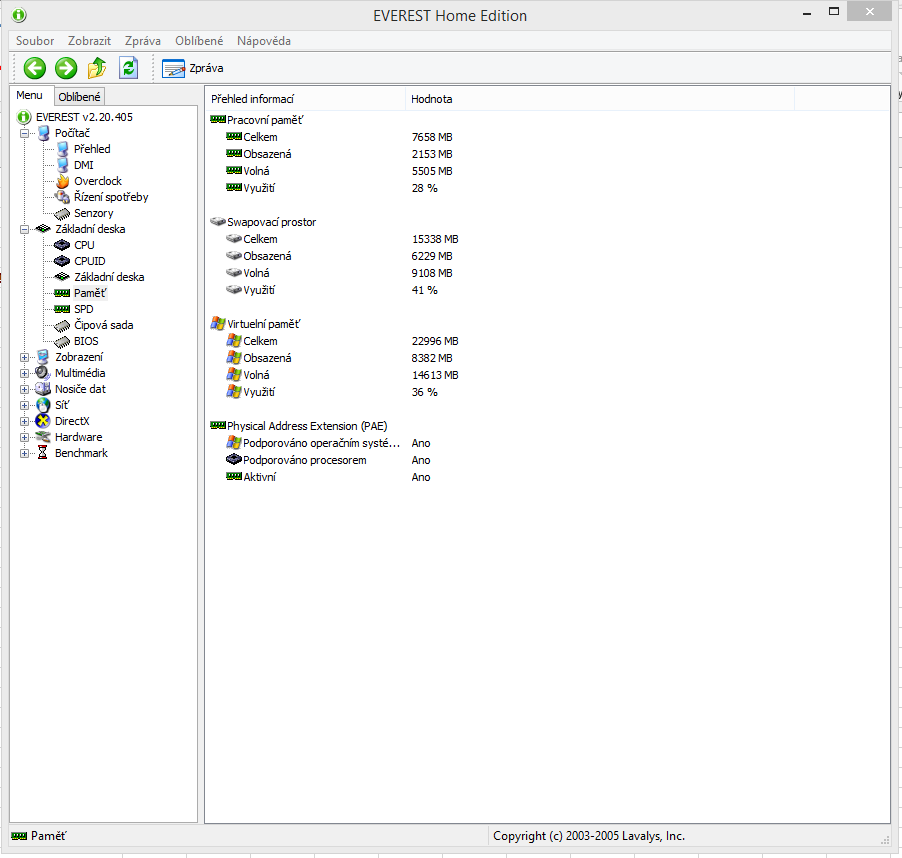 Klikl jsem na paměť - jednotlivé RAM jsem nezjistil.
