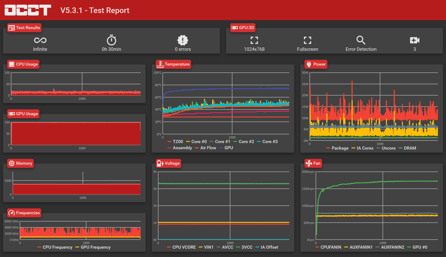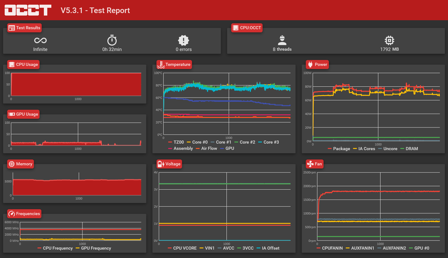 Budu tento příspěvek updatovat, zatím dávám výsledek CPU:OCCT (test jel 32 minut):